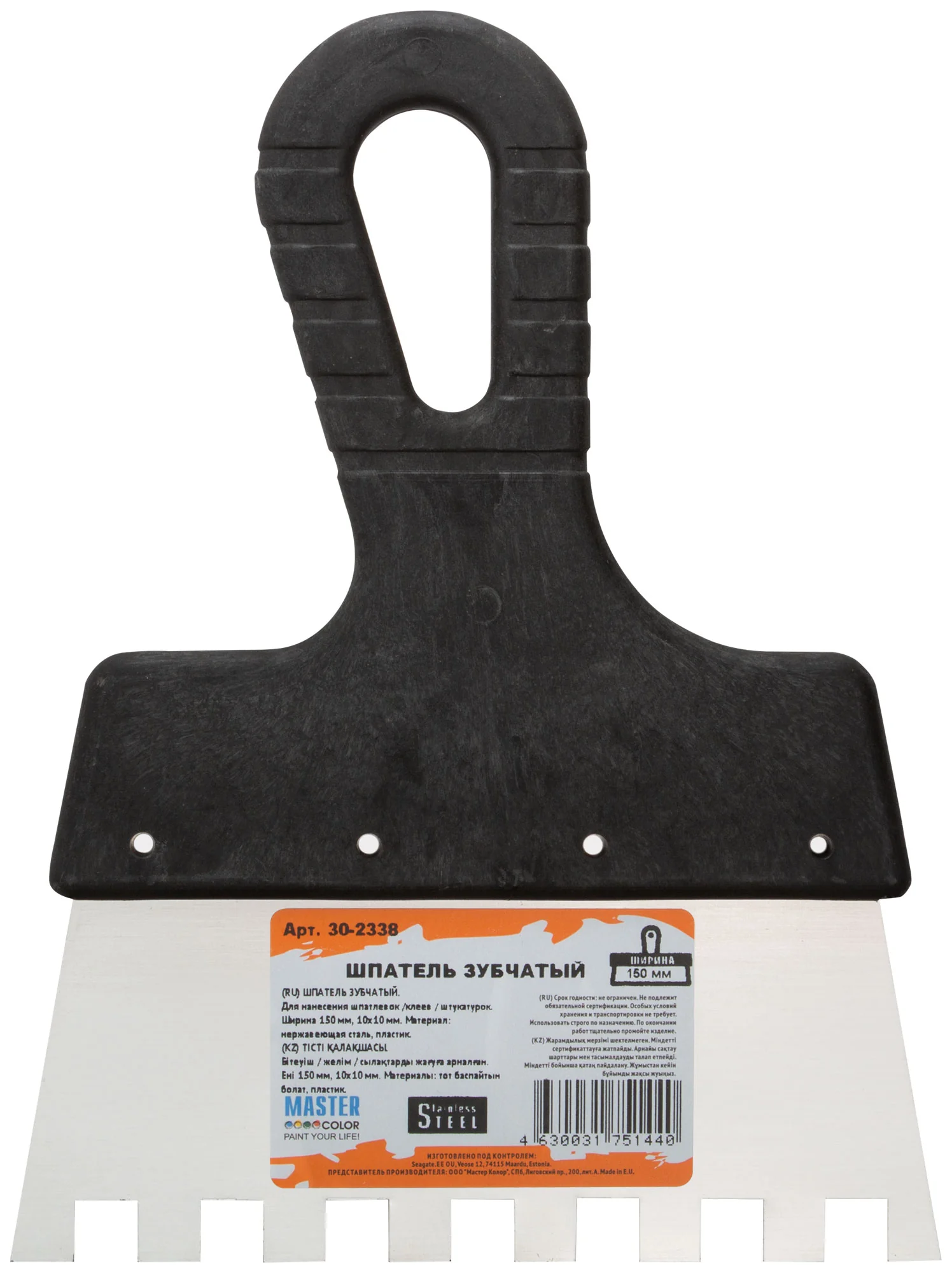 Шпатель зубчатый, 10х10 мм, нержавеющая сталь, пластиковая ручка, 150 мм