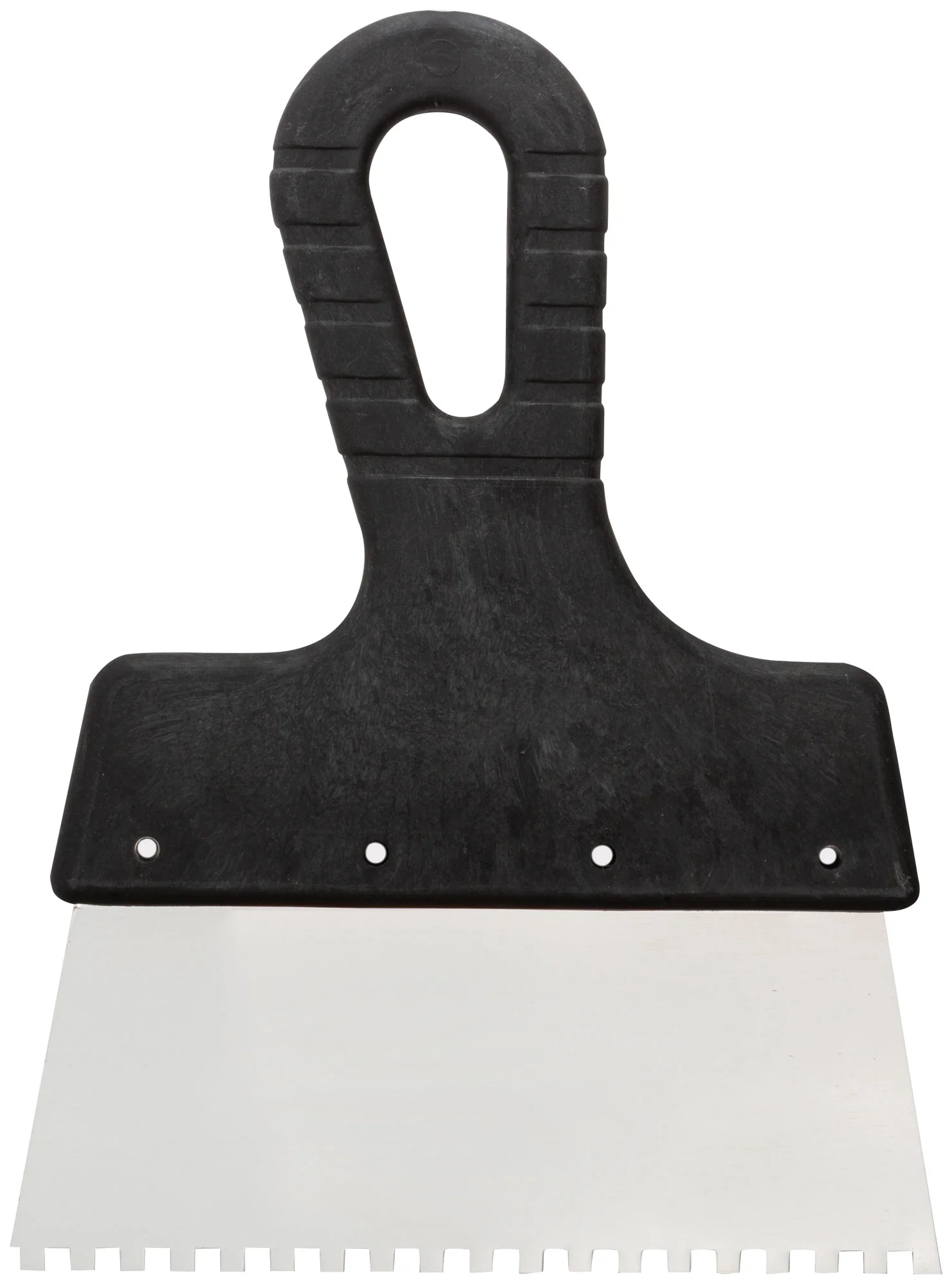 Идеально подходит для нанесения клеевого раствора на плитку или другие поверхности. Этот инструмент станет незаменимым помощником при укладке плитки, обеспечивая равномерное распределение клея благодаря зубцам 4x4 мм.