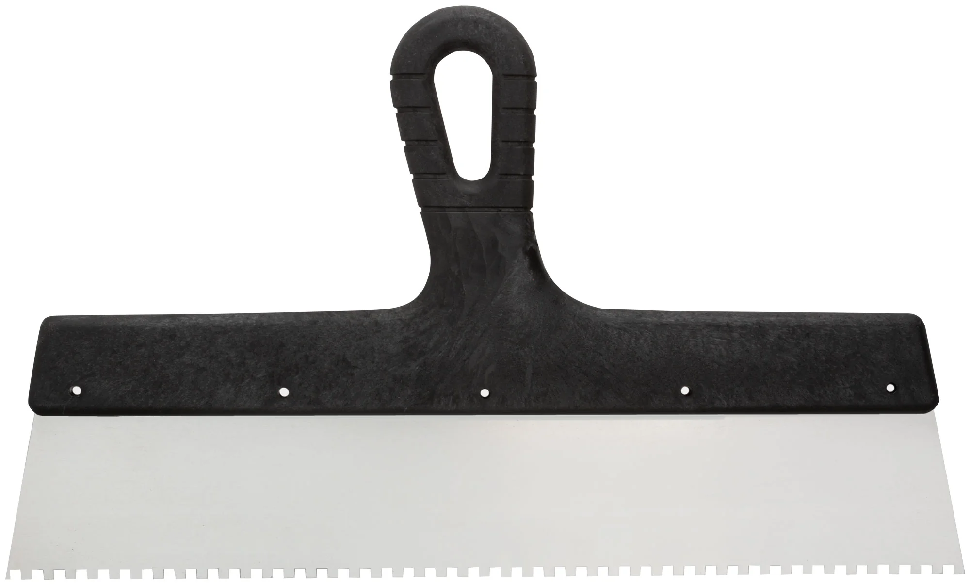 Используйте зубчатый шпатель от MASTER COLOR для точного нанесения клея во время укладки плитки или других облицовочных работ. Идеально подходит для создания равномерного клеевого слоя на больших площадях.