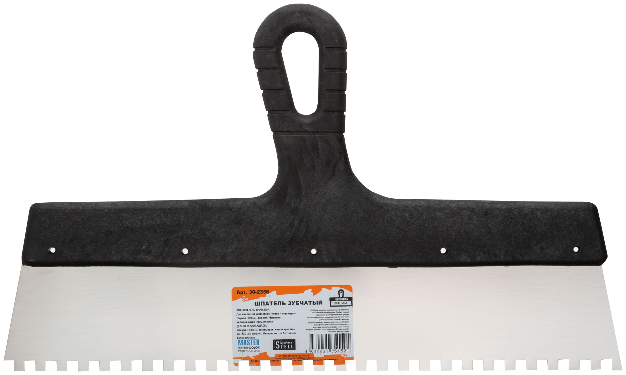 Шпатель зубчатый 6х6 мм из нержавеющей стали с пластиковой ручкой 350 мм