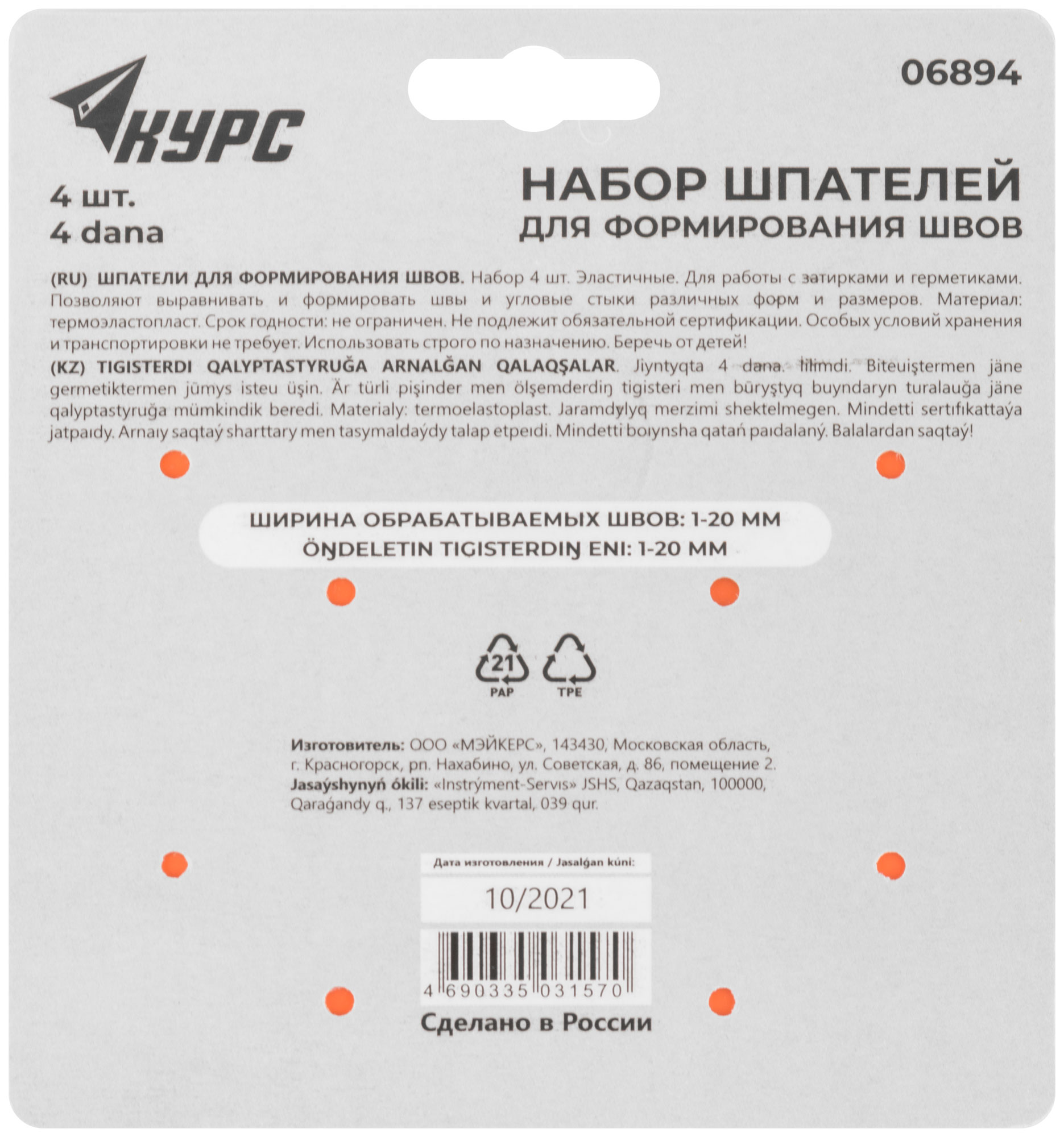 Ищете инструмент для аккуратного и точного формирования швов и угловых стыков? Этот набор шпателей от бренда КУРС станет вашим незаменимым помощником в работе с затирками и герметиками. Благодаря своей эластичности, шпатели позволяют легко выравнивать швы различных форм и размеров.