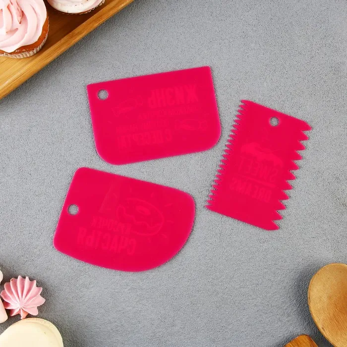 Шпатели кондитерские, набор 11.5×8 см, 11.2×6.5 см, 10×7 см «Кусочек счастья», 3 шт — Характеристики