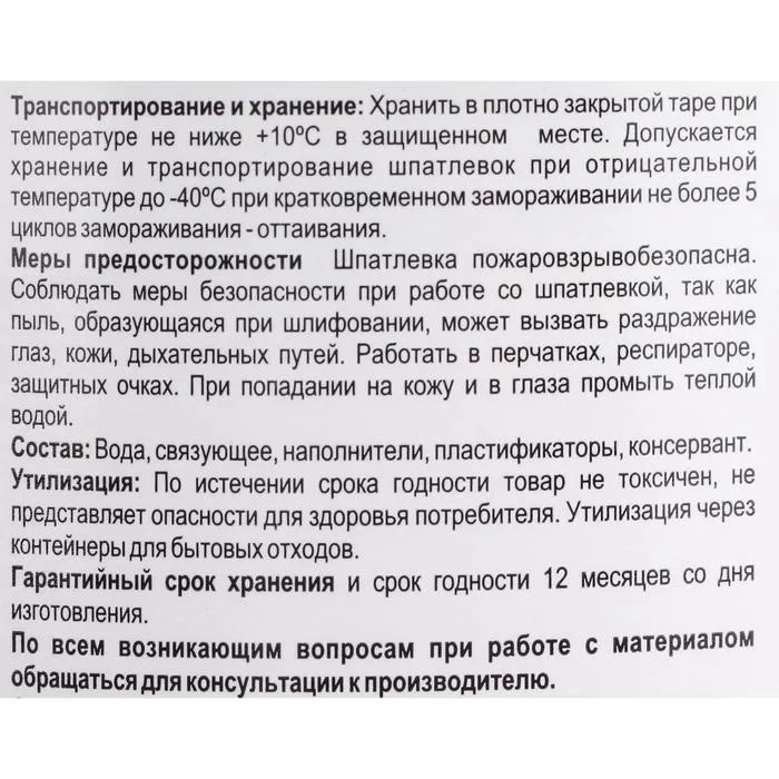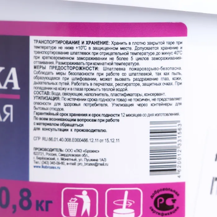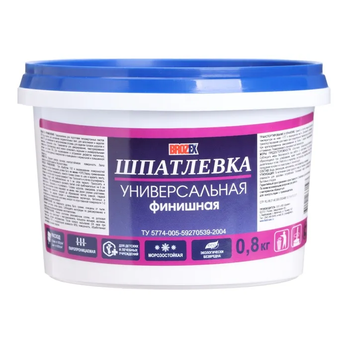 Шпатлёвка финишная универсальная Brozex, 0,8 кг — Характеристики