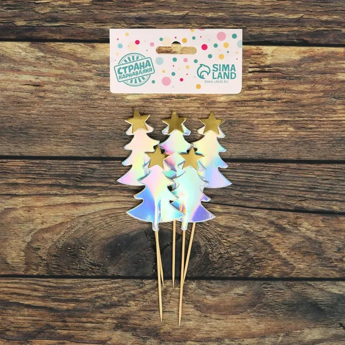 Шпажки для канапе новогодние «Ёлочка со звездой», набор 5 шт., перламутровые — Характеристики