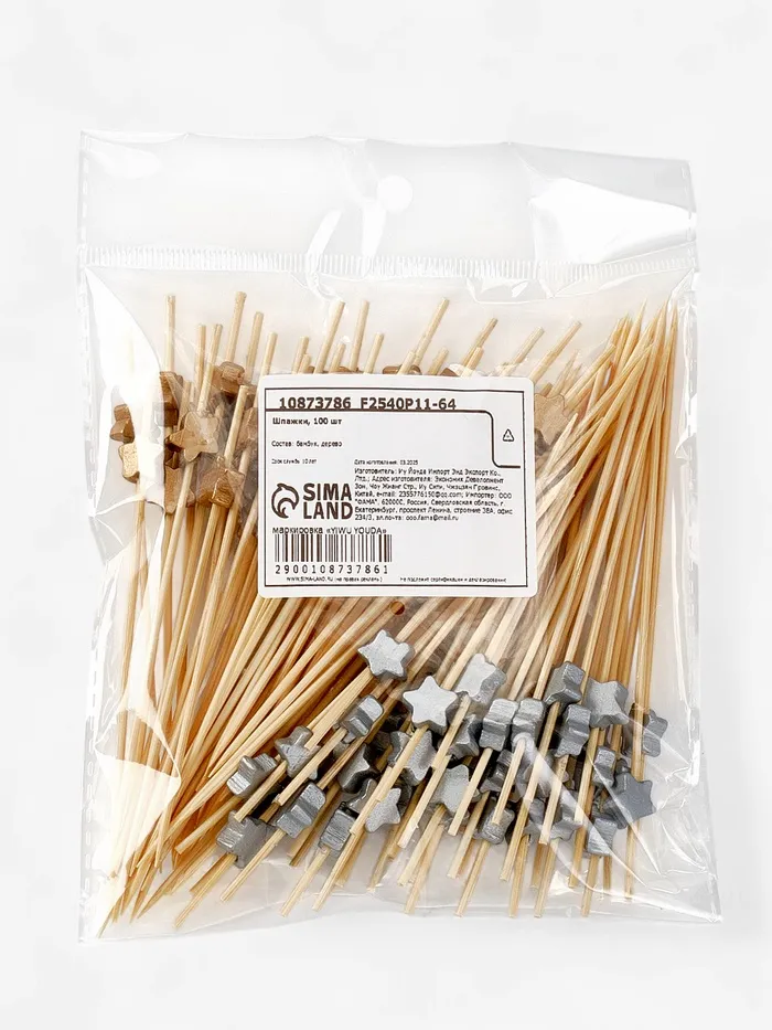 Шпажки для канапе «Звезды» бамбук, цветзолото, серебро, 100 шт. — Характеристики