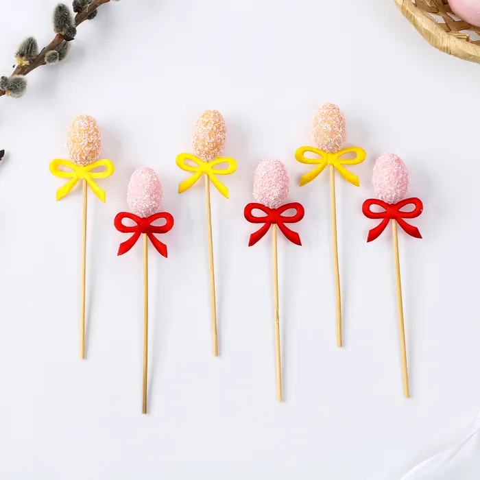 Деревянные шпажки с декорированными элементами — отличный выбор для декорирования закусок в честь празднования Пасхи. Шпажки помогут украсить стол к любому празднику, будь то домашний ужин или торжественное мероприятие. Они подойдут для канапе, мини-бутербродов и интересных закусок. Такое разнообразие делает их популярными для использования как в домашних условиях, так и профессионалами кейтеринга. Шпажки пригодятся на банкетах, свадьбах, дегустациях, рекламных мероприятиях, фуршетах, пикниках и корпоративах.