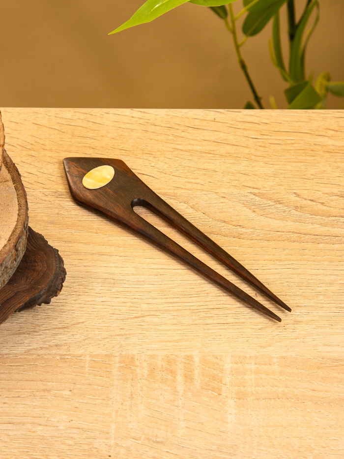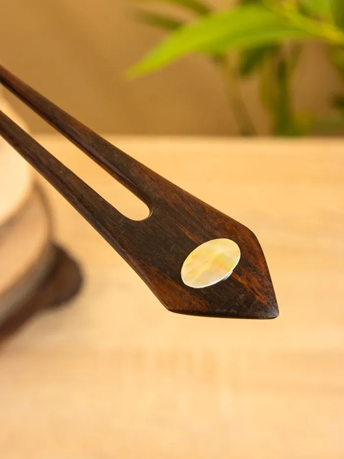 Шпилька для волос, 17×4 см, дерево Соно, ракушка, тёмно-коричневая — Характеристики