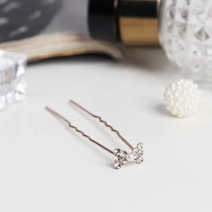 Шпилька для волос «Бант», с жемчужиной, 6.5 см