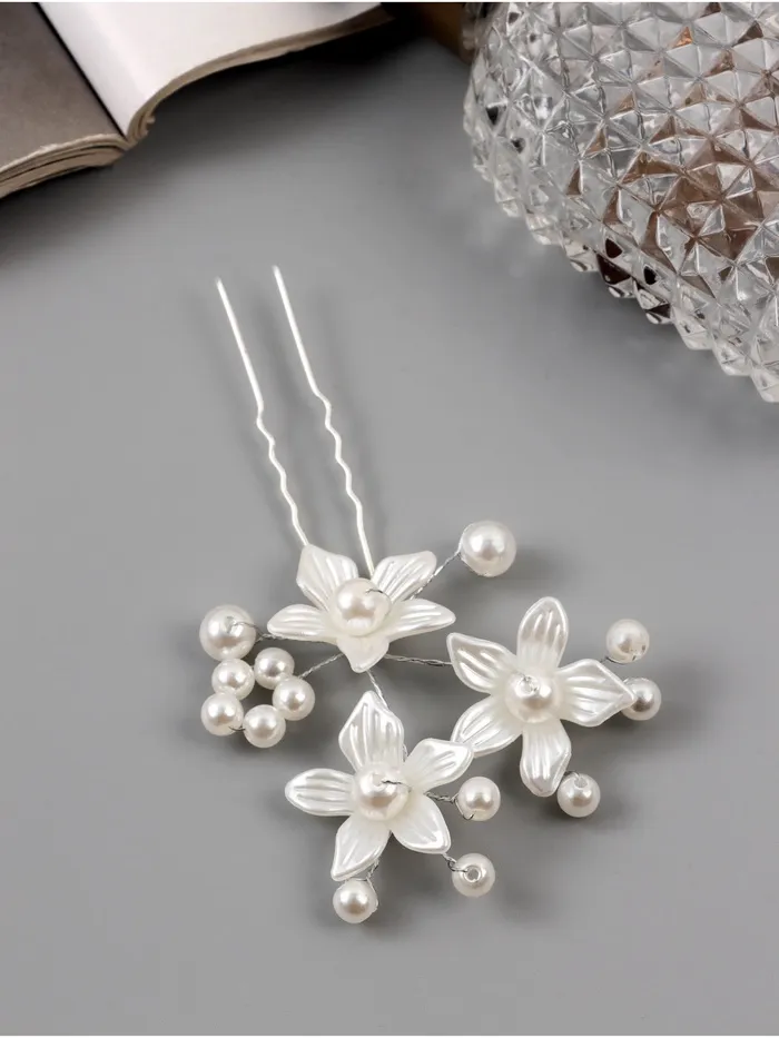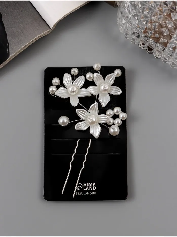 Шпилька для волос «Эмилия», цветы шарики, 8×6.5 см, белая — Характеристики
