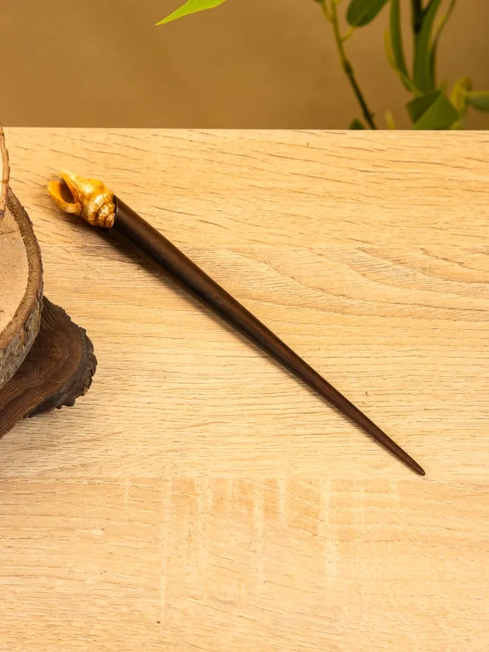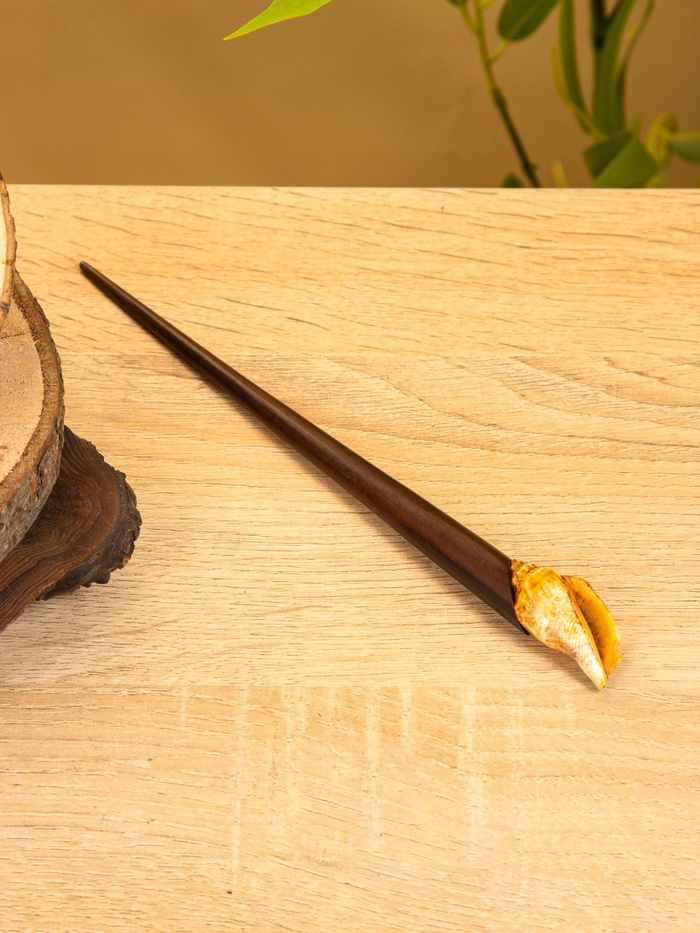 Шпилька для волос, 20 см, дерево Соно, ракушка, тёмно-коричневая