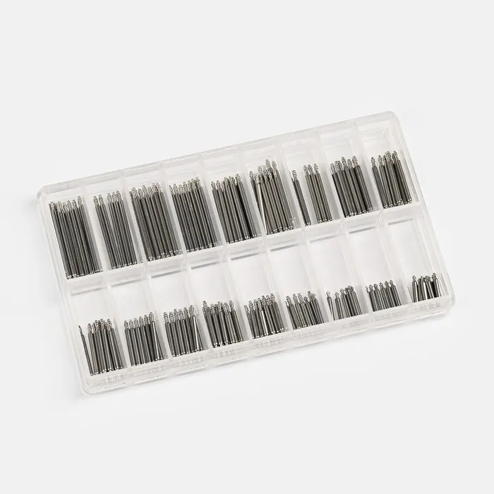 Набор штифтов для замены ремешка на часах - необходимый комплект для часовщиков и людей, которые хотят починить часы самостоятельно. Штифты являются слабым звеном в часах: коррозия штифта от воды, либо механическое повреждение штифта часов требует замены штифта-шпильки.