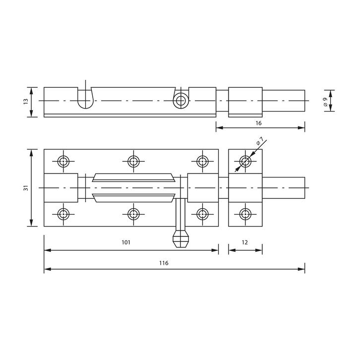 Шпингалет, 10 см, оцинкованный, цвет хром — Характеристики