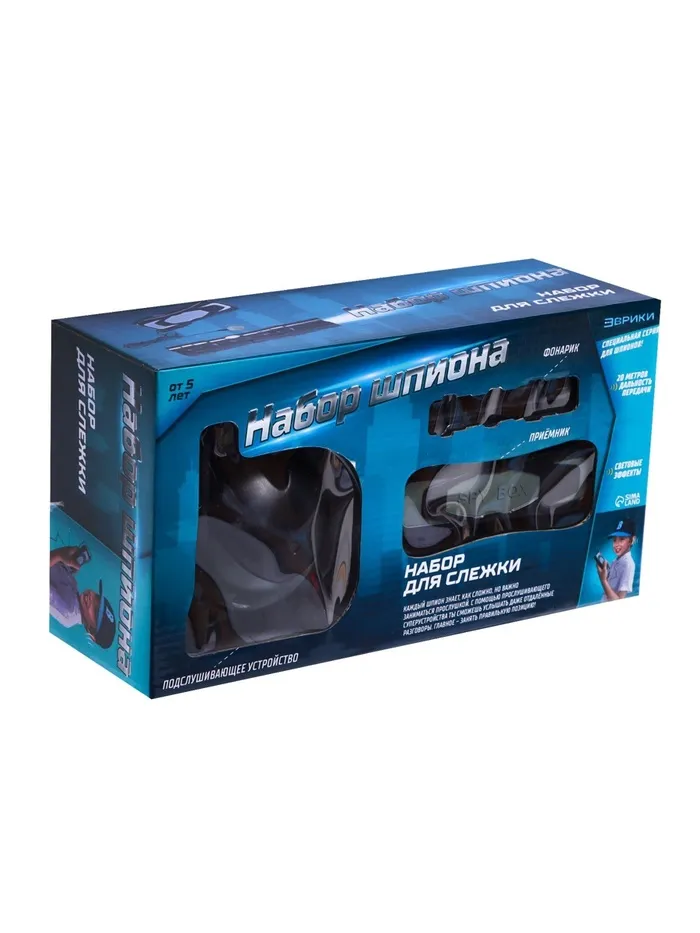 - Полный набор агента: в комплект входят подслушивающее устройство, приёмник и фонарик. Каждый элемент помогает разыгрывать захватывающие сценарии слежки, расследований и секретных операций.