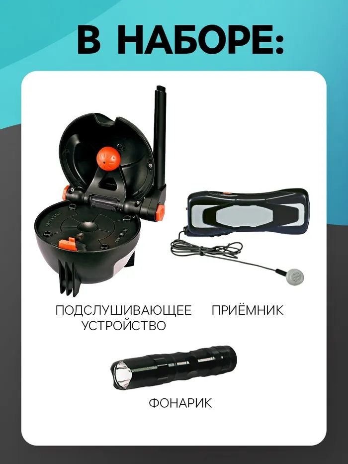 Шпионы «Набор для слежки»: подслушивающее устройство, приёмник, фонарик, световые эффекты — Характеристики