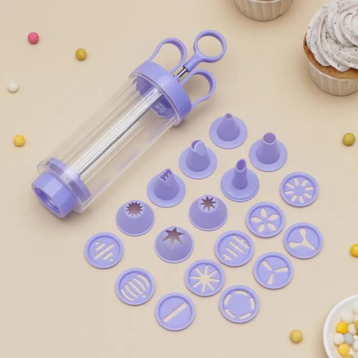 Шприц кондитерский Доляна, 18 насадок, 23×6.5×6 см станет вашей "волшебной палочкой" при создании кондитерских шедевров. Удобный инструмент позволит в точности воплотить идею и поразить воображение гостей чудесными украшениями даже самого обычного блюда.
