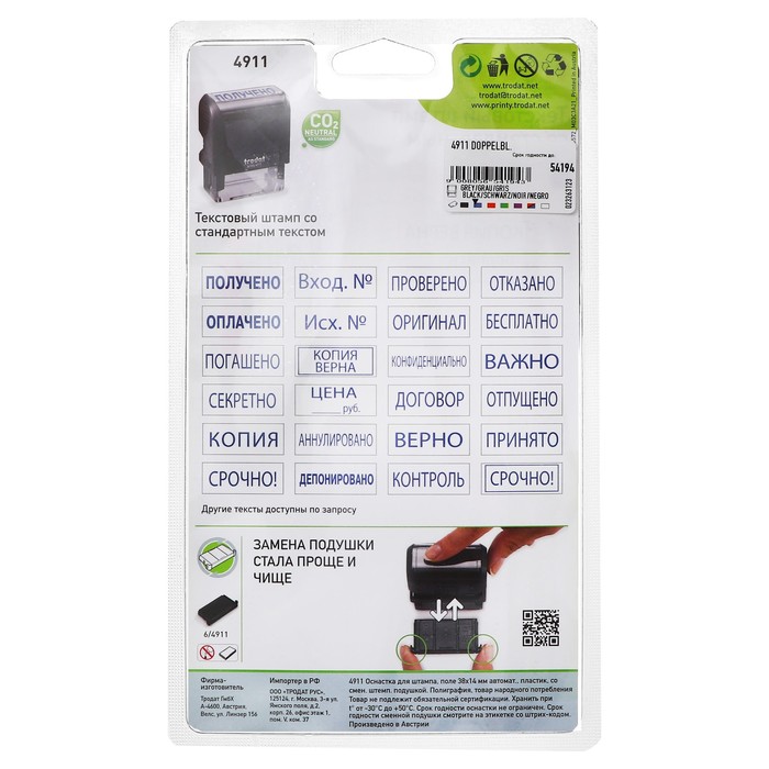 Штамп автоматический Trodat PRINTY 4911, «КОПИЯ ВЕРНА, подпись» — Характеристики