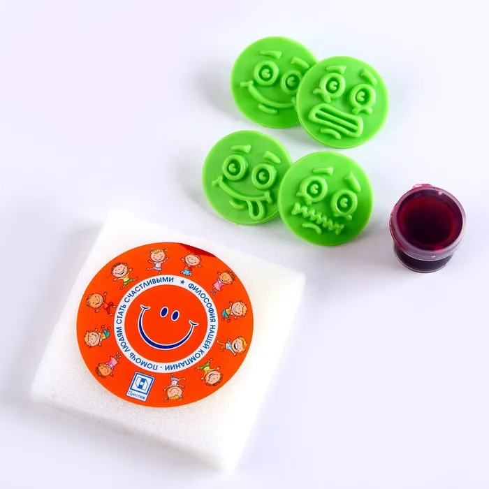Печать цветная «Смайлы», набор 5 шт., диаметр — 2 см, МИКС