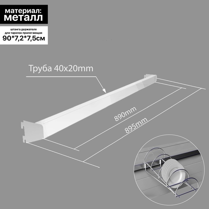 Штанга для держателя для тарелок прилегающая 900 мм, хром — Характеристики