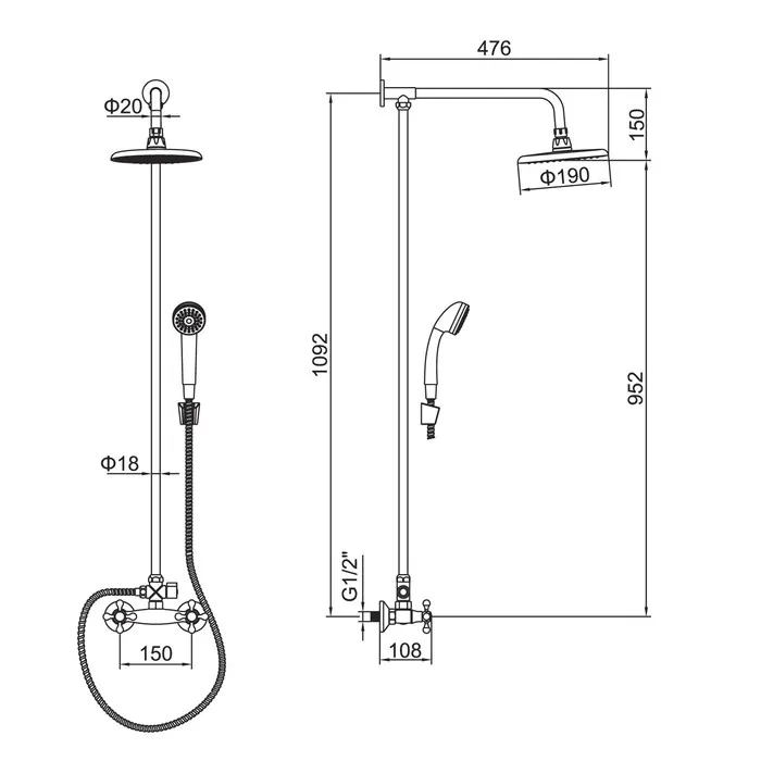 Штанга со смесителем Accoona А8176-1, двухрычажная, с тропическим душем, хром — Характеристики