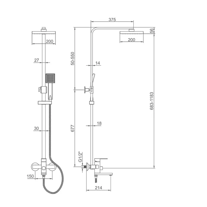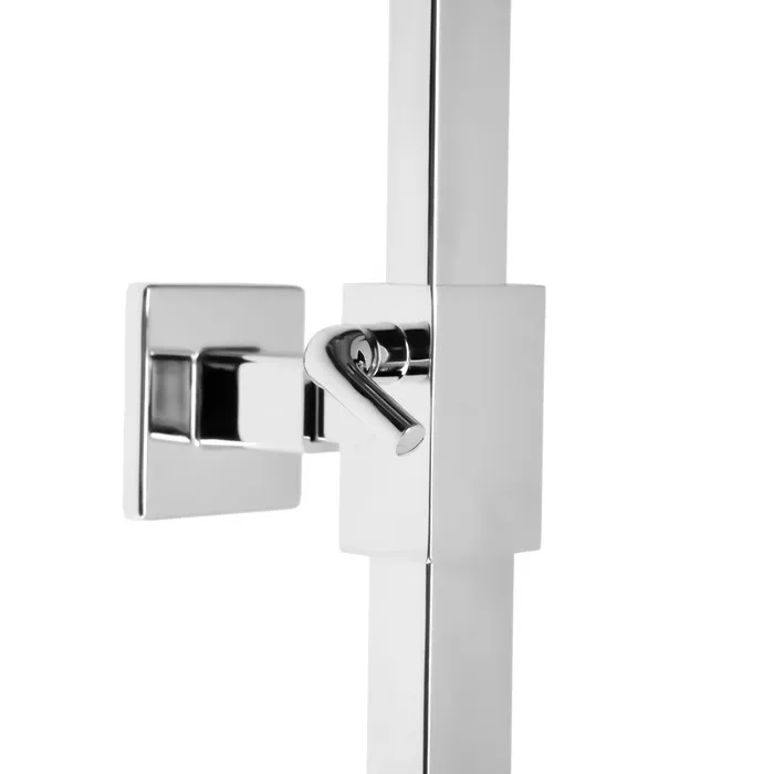 Настенная штанга крепится к стене на нужной высоте. На штанге предусмотрен держатель для лейки. Верхняя душевая система объединена со штангой. Благодаря этому система подаёт обогащённую воздухом воду. Эксцентрики гарантируют точную установку штанги строго горизонтально даже при расхождении труб.