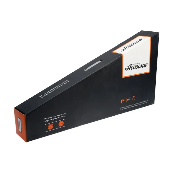 Штанга со смесителем Accoona А8394 состоит из штанги с однорычажным смесителем, шланга с лейкой и «тропического душа». Особая гибкая конструкция шланга устойчива к изломам.