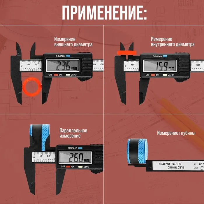 Штангенциркуль электронный ЛОМ, с глубиномером, пластиковый, 150 мм — Характеристики