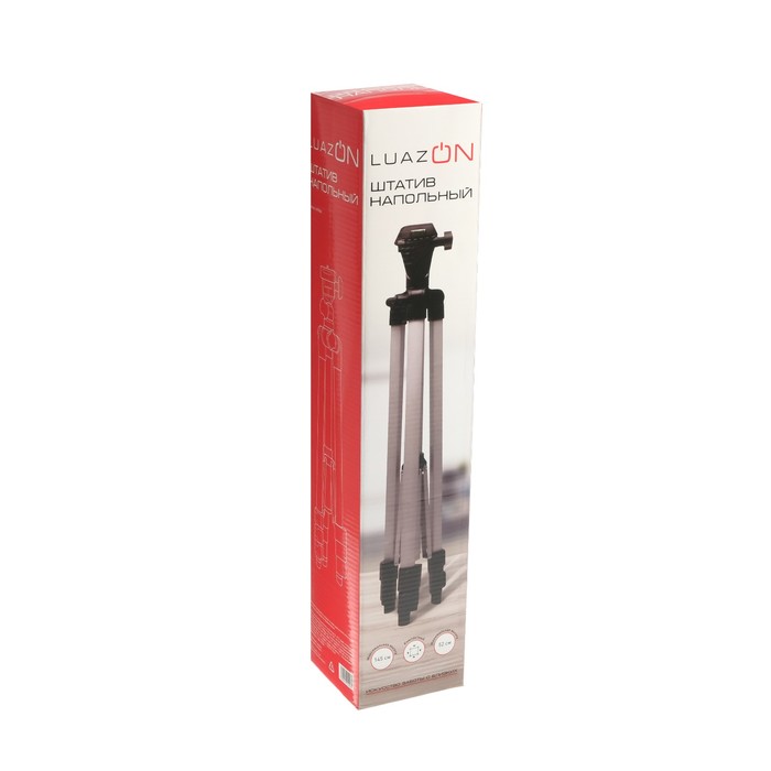 Напольный штатив LuazON предназначен для использования с фотоаппаратами, видеокамерами и смартфонами. Наклонная головка позволяет ориентировать и зафиксировать камеру для пейзажных или портретных съёмок. Стандартная резьба штатива 1/4 дюйма обеспечивает совместимость с широкой линейкой устройств. В комплекте находится специальное крепление, которое подойдёт для фиксации смартфона. Устройство обладает компактным размером и небольшим весом. Регулируйте высоту штатива от 52 см до 145 см и надёжно фиксируйте её благодаря клипсам, которые расположены на ножках. Для быстрой настройки угла наклона рабочей площадки предусмотрен жидкостный уровень.