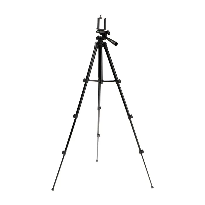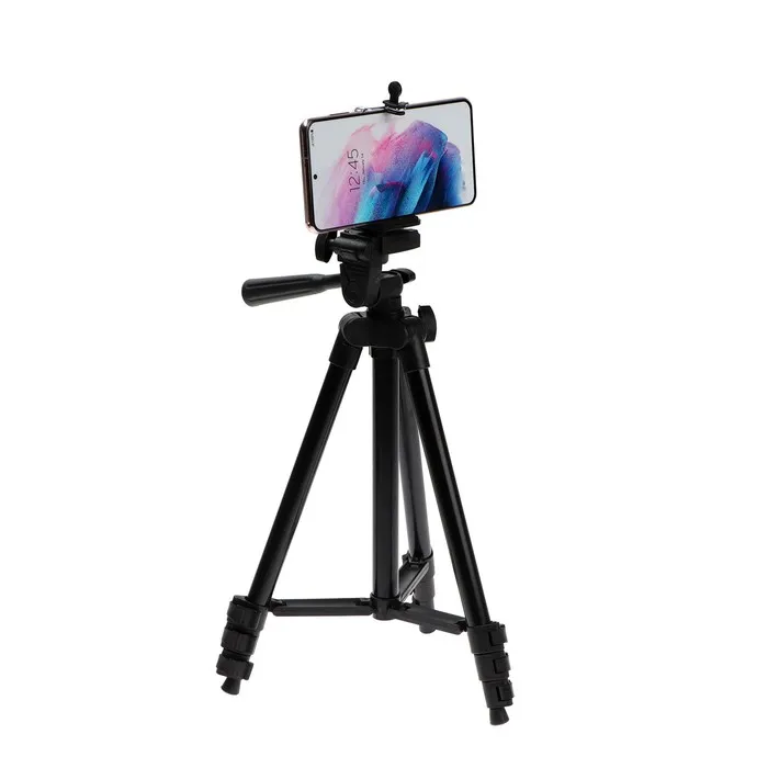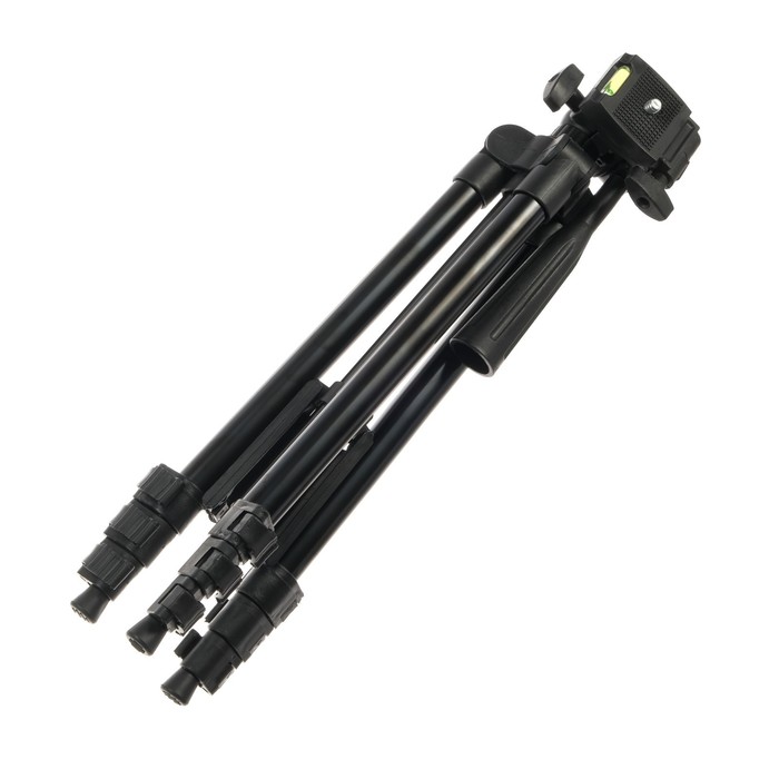 Напольный штатив-трипод предназначен для использования с фотоаппаратами и видеокамерами. Наклонная головка позволяет ориентировать и зафиксировать камеру для пейзажных или портретных съёмок. Стандартная резьба штатива 1/4 дюйма обеспечивает совместимость с широкой линейкой устройств. В комплекте находится специальное крепление, которое подойдёт для фиксации смартфона. Устройство обладает компактным размером и небольшим весом. Легко сложить в чехол и взять с собой. Регулируйте высоту штатива от 34 см до 108 см и фиксируйте её благодаря клипсам, которые расположены на ножках. Жидкостный уровень поможет выровнять аксессуар для грамотной съёмки.