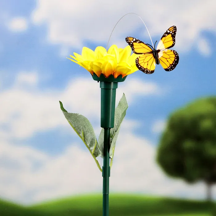 Штекер летающий «Подсолнух с бабочкой», на солнечной батарее, МИКС