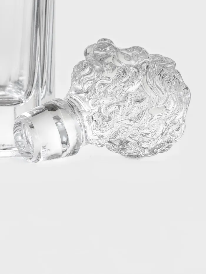 Изготовленный из прочного стекла, он обладает элегантным дизайном с рельефной текстурой и барельефом в виде головы льва, что украсит ваш интерьер. Этот штоф идеально подходит для подачи крепких напитков, а его объем 750 мл позволяет наслаждаться любимыми напитками в компании друзей или семьи.