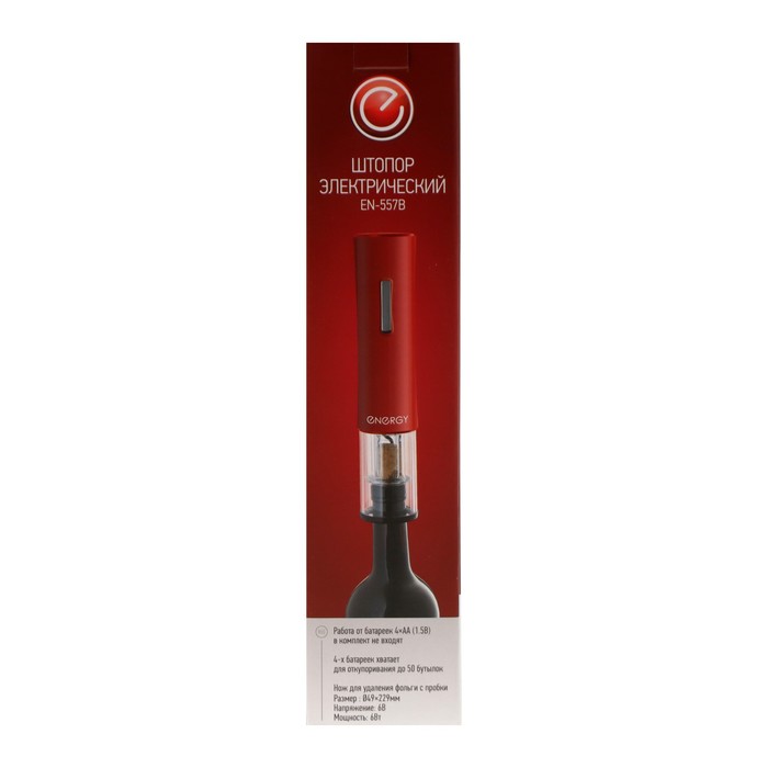 Изготовленный из прочного пластика, штопор лёгок и удобен в использовании. Для работы ему достаточно четырёх батареек типа АА. Благодаря простоте конструкции, штопор работает быстро и эффективно, с минимальными усилиями. Он не требует особого ухода и не требует подключения к электросети, что делает его ещё более удобным для использования в любых условиях.
