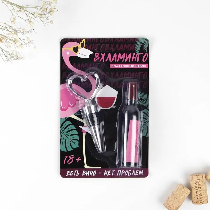 Штопор полезное и удобное приспособление для быта и просто необходимый предмет. Штопор имеет два рычага с помощью которых вы легко сможете вытащить пробку из бутылки. Пробка для бутылки используется для плотного закрытия горлышка. Данный набор станет отличным подарком на любой праздник.