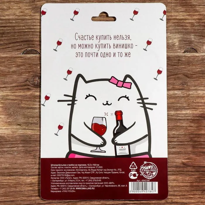Штопор и пробка для бутылки вина, набор «Винишко» — Характеристики