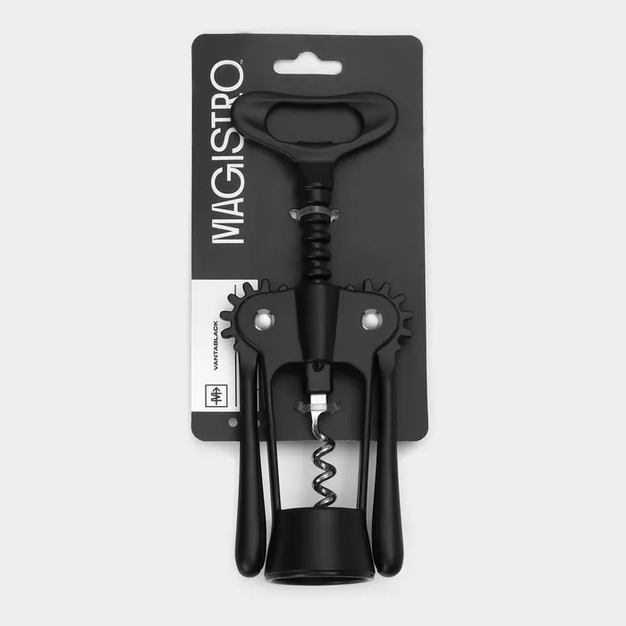 Штопор Magistro Vantablack незаменимый инструмент для любого бара или домашней коллекции. Он изготовлен из высококачественной нержавеющей стали, которая обеспечивает прочность и долговечность инструмента. Черный цвет придает штопору стильный и современный вид, который будет сочетаться с любым интерьером.