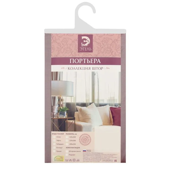 Примечание: В комплект входит одна портьерная штора и прихват. Ширина шторной ленты 4 см.