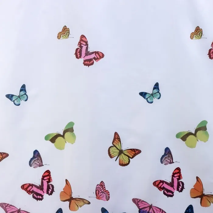 Откройте для себя мир ярких красок и легкости с изумительной шторой для ванной в тематике «Бабочки». Размер 180×180 см идеально подходит для любой ванной комнаты, а белоснежный фон с изящными рисунками бабочек добавляет нотки свежести и оригинальности в ваш интерьер.