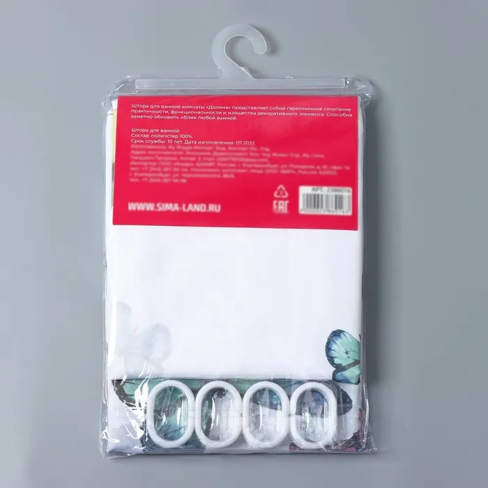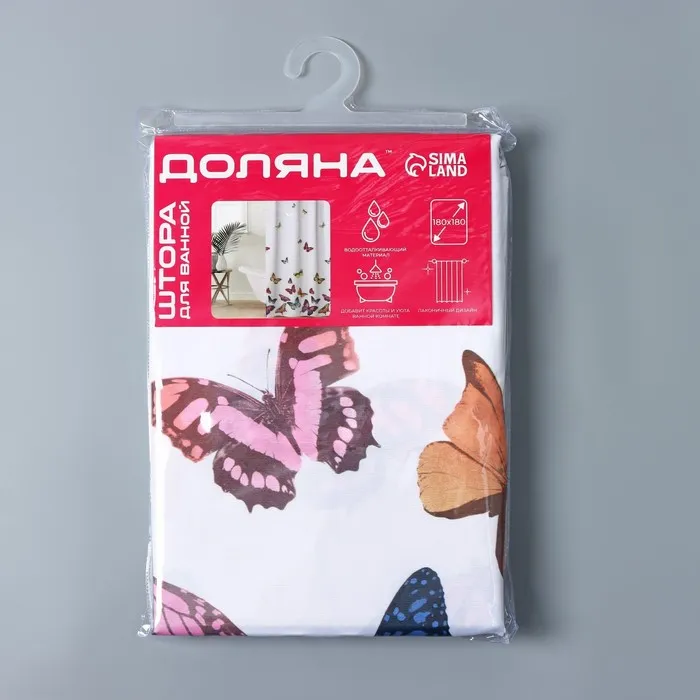 Штора для ванной Доляна «Бабочки», 180×180 см — Характеристики