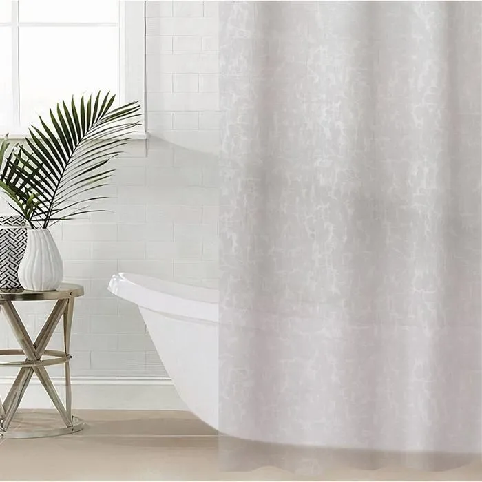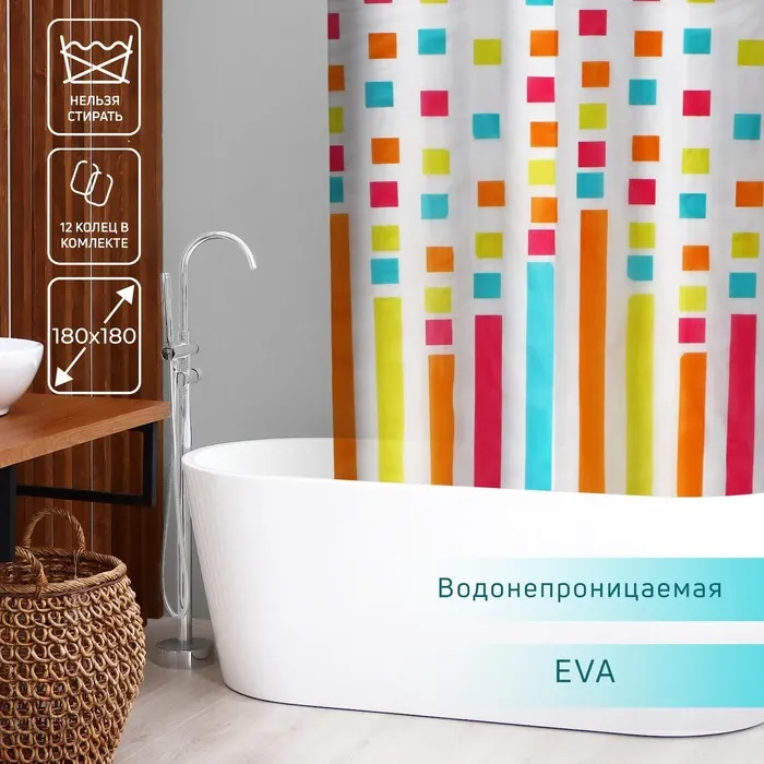 Изготовленная из прочного EVA, эта штора не только выглядит стильно, но и обладает высокой устойчивостью к влаге. Она легко очищается и не требует сложного ухода, что делает её практичным выбором для ежедневного использования. Прорезные крепления обеспечивают простоту установки и надежное крепление, позволяя шторе плавно скользить по карнизу.
