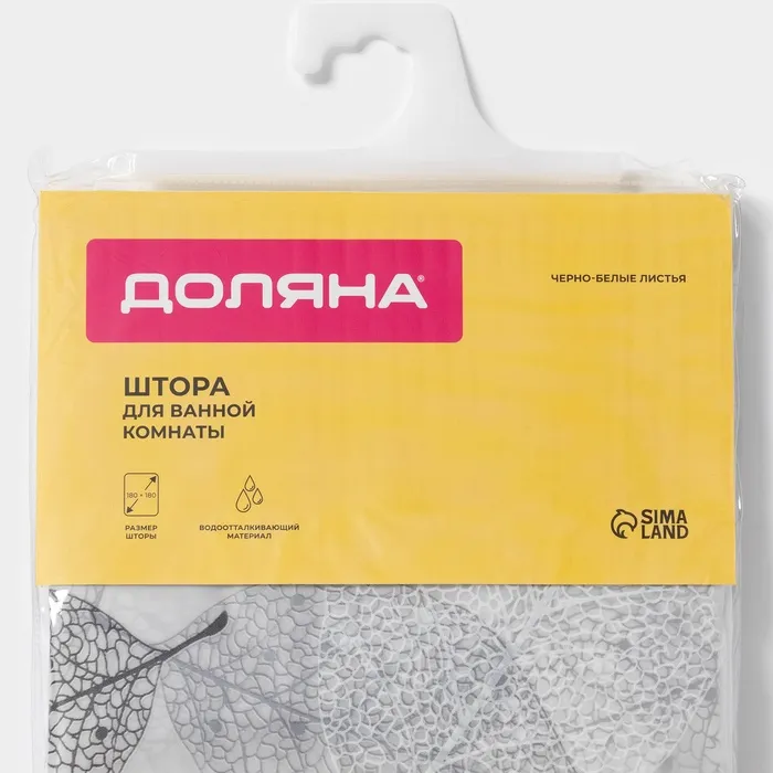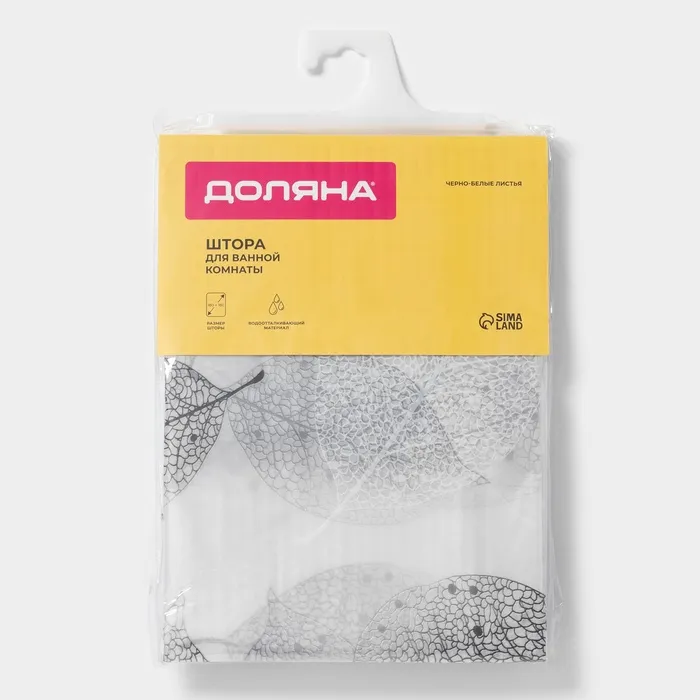 Штора для ванной Доляна «Чёрно-белые листья», 180×180 см, EVA — Характеристики