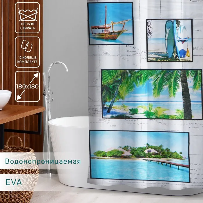 Штора для ванной Доляна «Пляж», 180×180 см, EVA — Характеристики