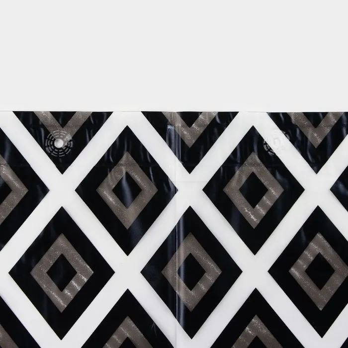 Откройте для себя стиль и элегантность с этой уникальной шторой для ванной, которая добавит изысканности в ваш интерьер. Размер 180×180 см идеально подходит для стандартных ванн, а контрастные черные и белые ромбы создают эффектный визуальный акцент, который будет радовать глаз каждый день.
