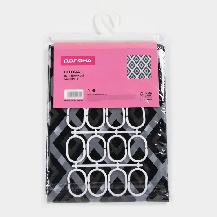 Штора для ванной Доляна «Ромбы», 180×180 см, EVA — Характеристики