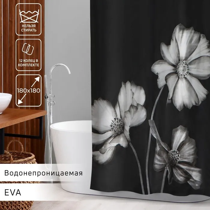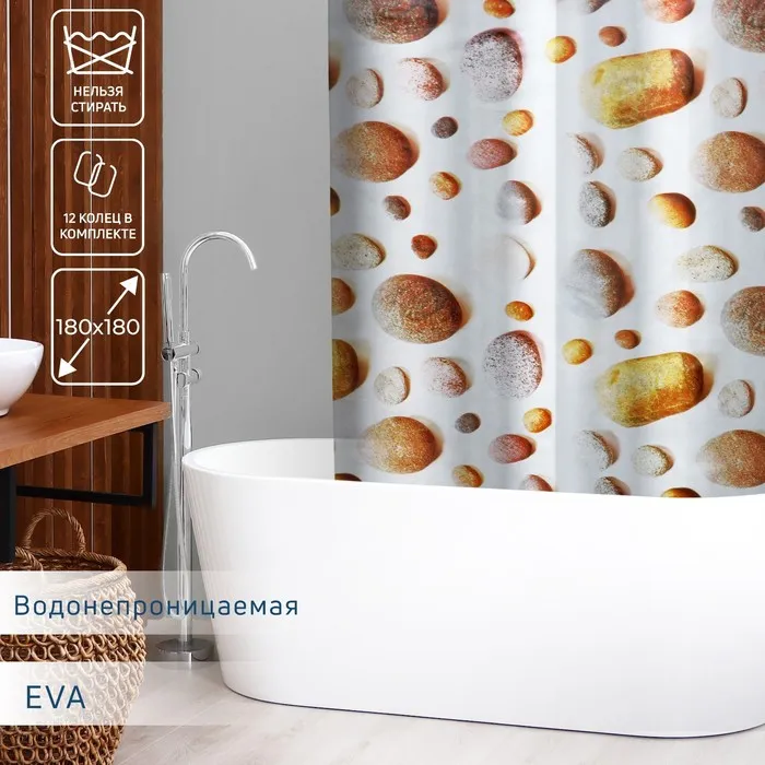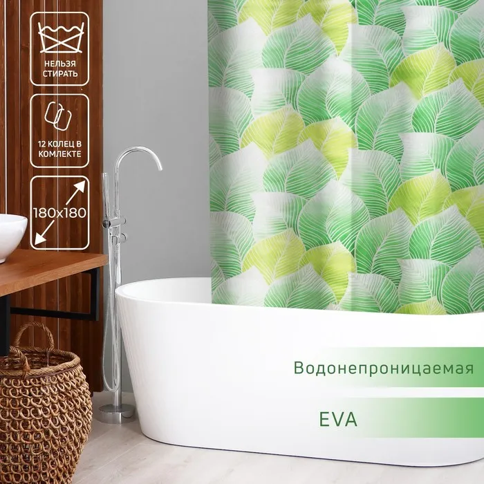 - Долговечность: прочный EVA-материал обеспечивает защиту от влаги и гарантирует долгий срок службы, что делает штору идеальным выбором для повседневного использования.