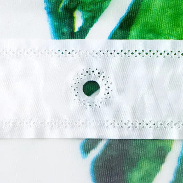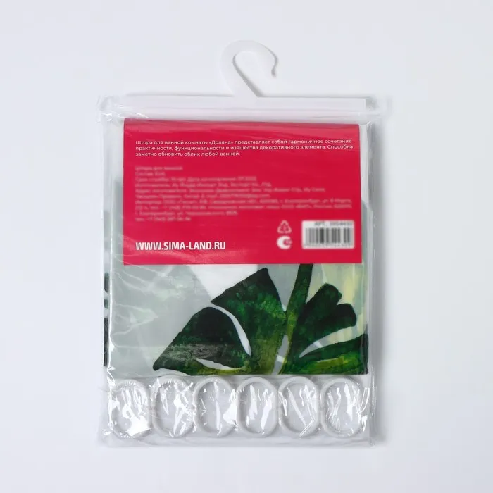 Добавьте в свою ванную комнату атмосферу тропического рая с яркой и стильной шторой в тематике «Тропики». Размер 180×180 см идеально подходит для стандартных ванных, а сочетание белого и зеленого цветов создает ощущение свежести и природной гармонии.