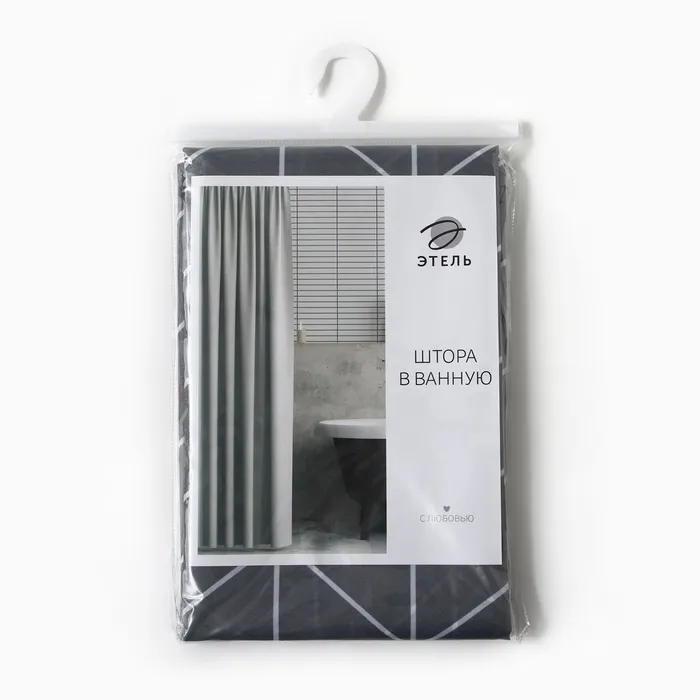 Штора для ванной Этель "Ёлочка", цв. серый, 180х180 см, полиэстер — Характеристики