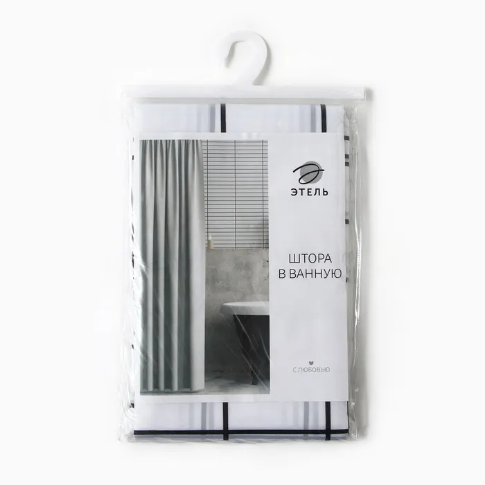 Штора для ванной Этель "Клетка", цв. белый, 180х180 см, полиэстер — Характеристики