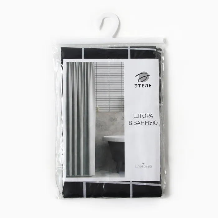 Штора для ванной Этель "Клетка", цв. чёрный, 180х180 см, полиэстер — Характеристики