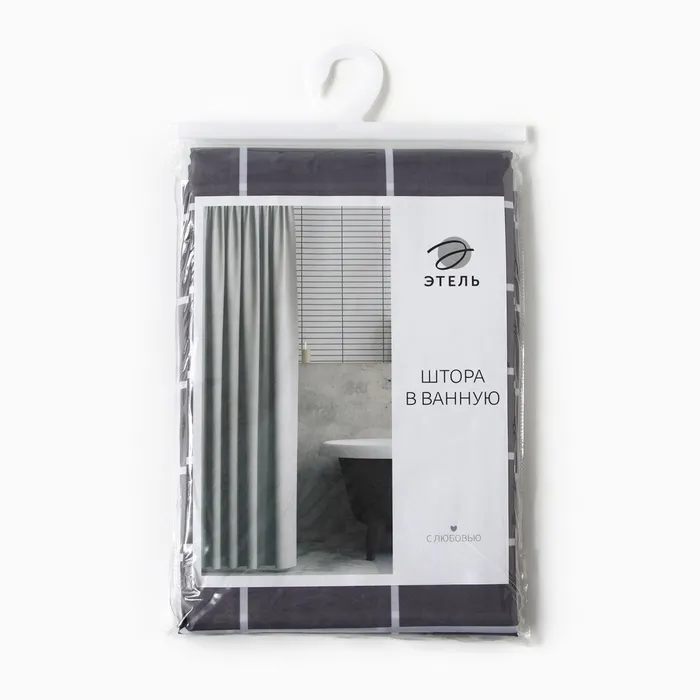 Штора для ванной Этель "Клетка", цв. серый, 180х180 см, полиэстер — Характеристики