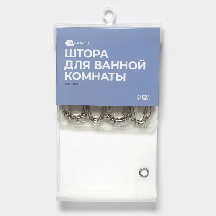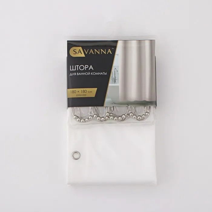 Штора для ванной комнаты SAVANNA «Элегант», с люверсами и металлическими кольцами, 180×180 см, PEVA — Характеристики
