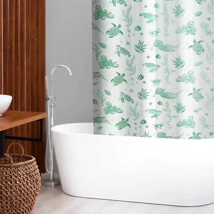 Погрузитесь в мир подводных глубин с занавеской «Подводный мир». Этот великолепный элемент декора размером 180×180 см привнесет в вашу ванную комнату свежесть и гармонию, благодаря своему яркому зеленому цвету и увлекательному дизайну, который изображает морскую фауну.
